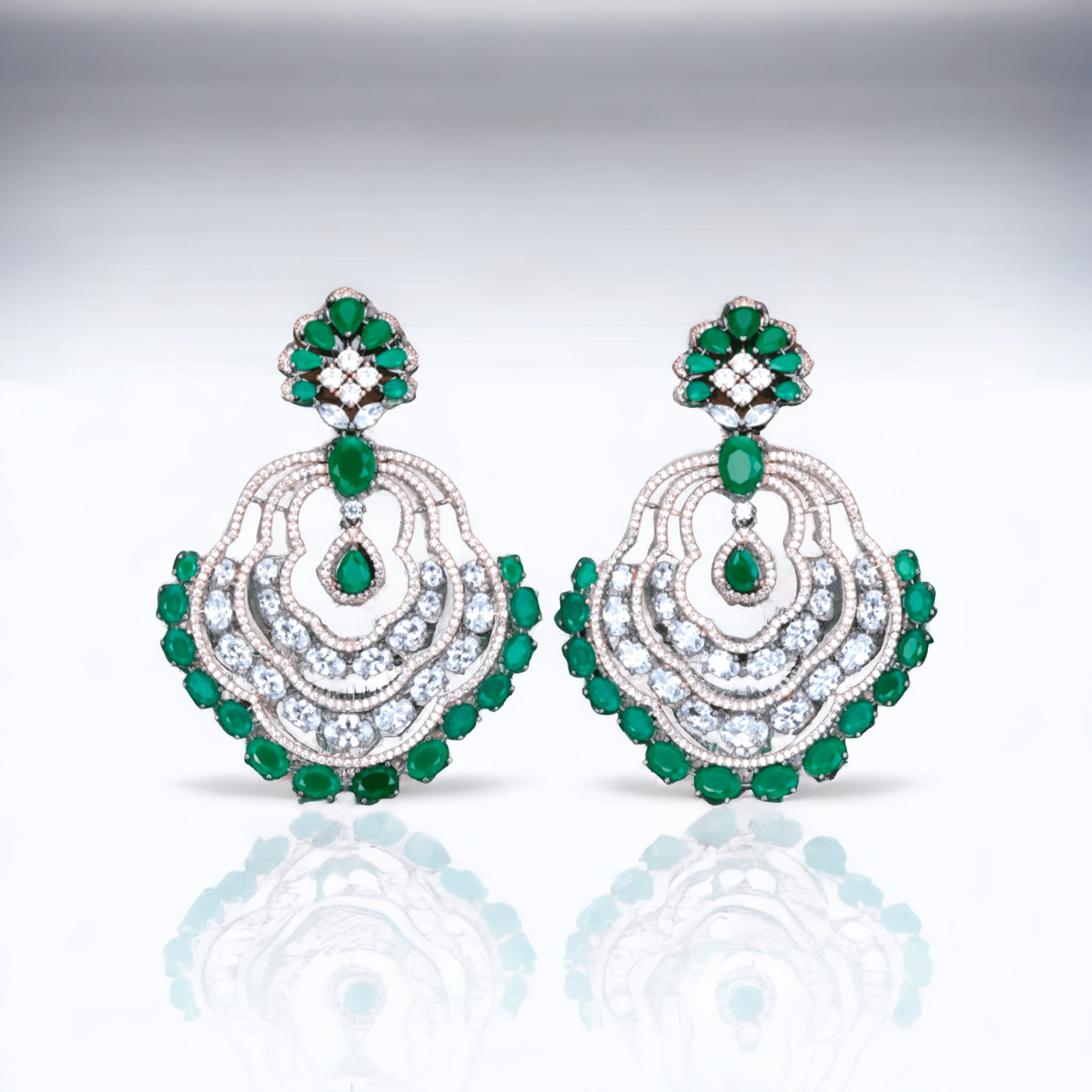 American Diamond Chandelier EarRings – Emerald Green Stone – Black Rhodium Victorian Polish – KJ104089