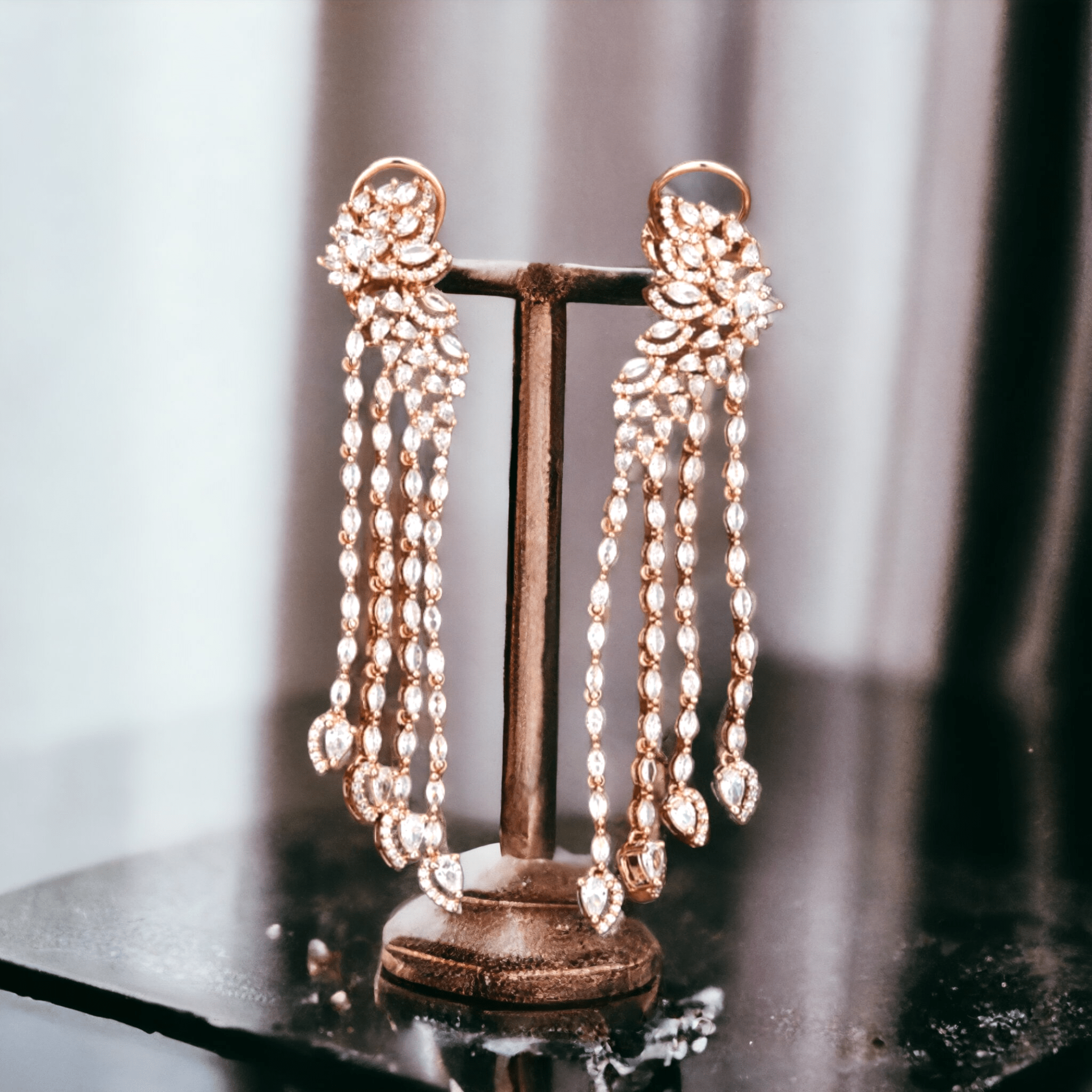American Diamond Chandelier EarRings – Rose Gold – KJ104084
