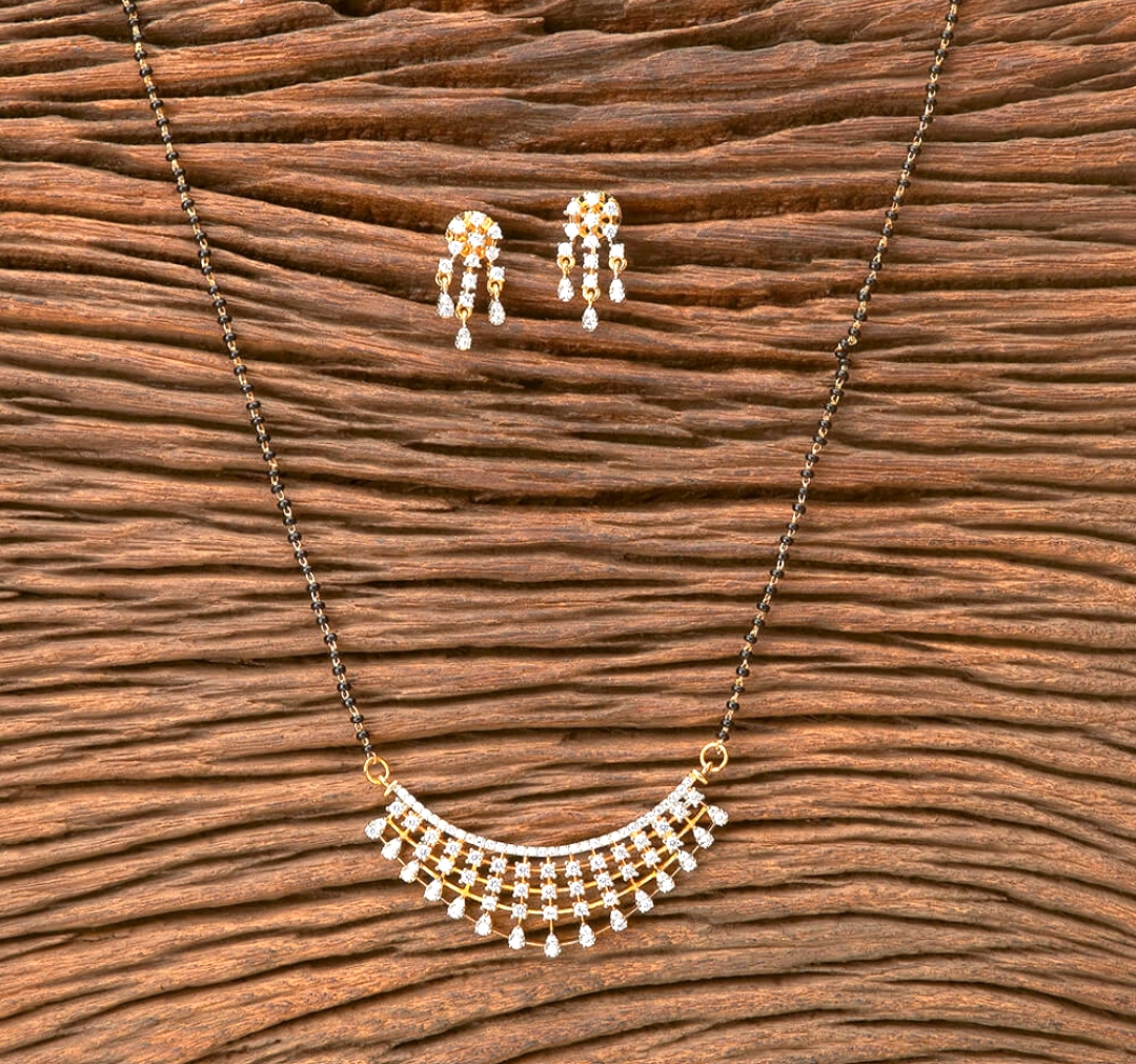 American Diamond Mangal Sutra with Matching Earrings in 18 inch Black Bead Chain – KJ