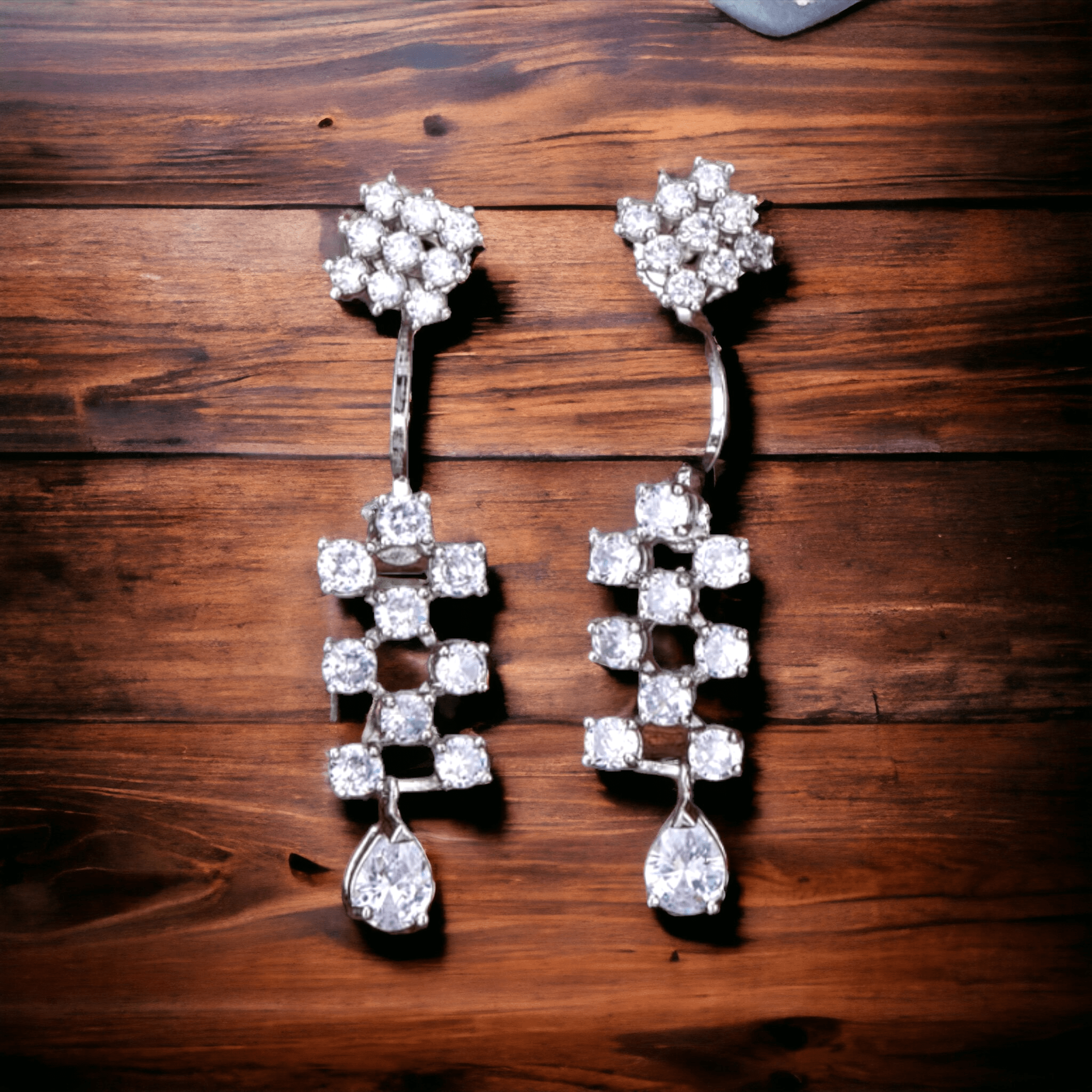 American Diamond Sandwich Concept Earrings – Silver Rhodium PolishAvailability: 1 in stock