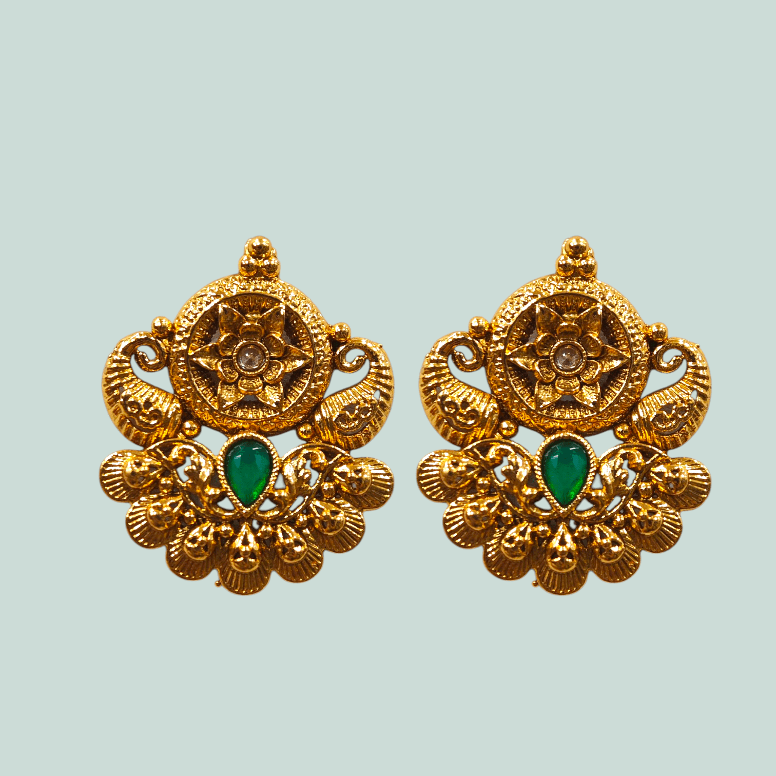 Ethnic Earring – Antique Gold Polish Tops – KJ108539Availability: 1 in stock