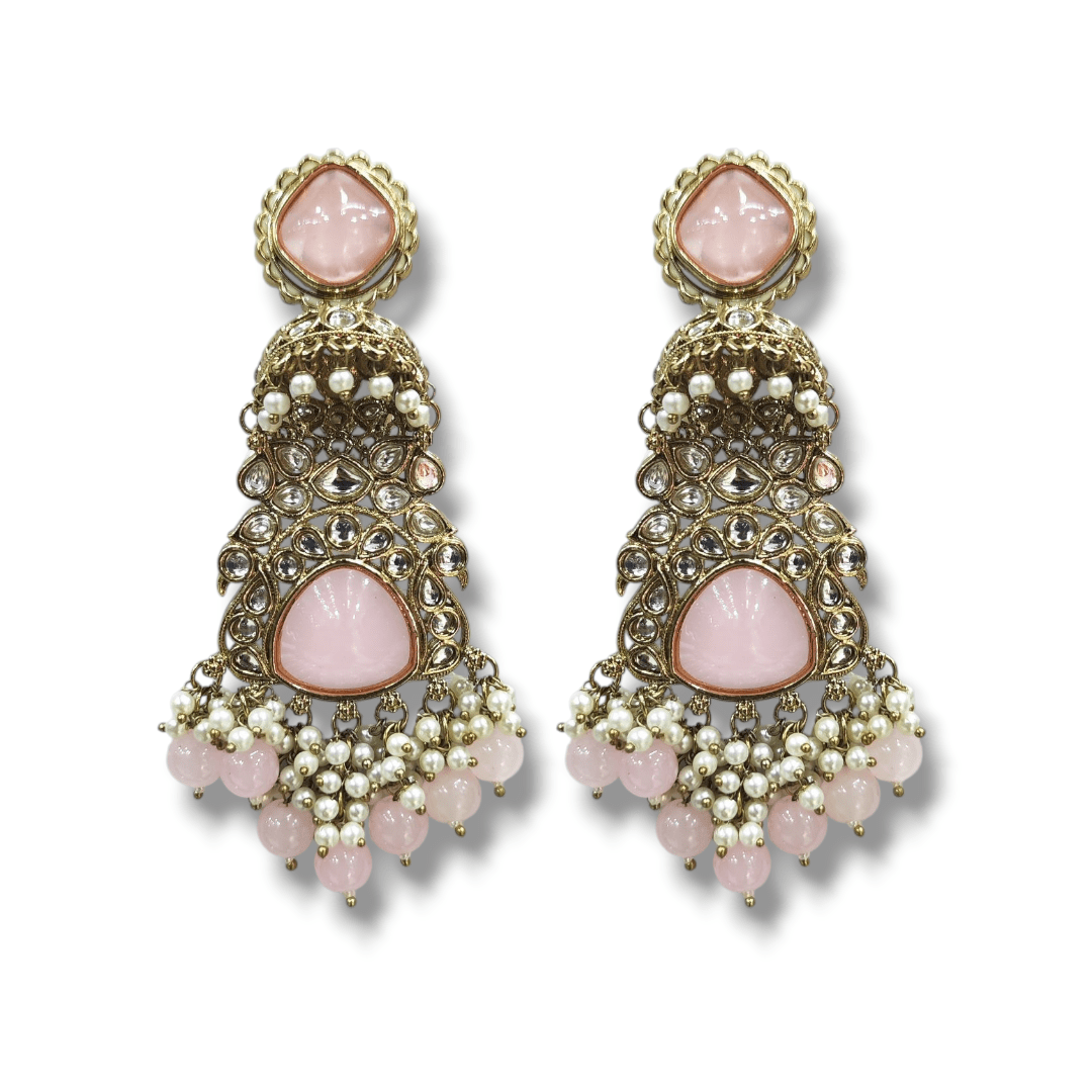 Baby Pink – Ethnic/Traditional Earring – Blend of Jhumka & Chaand Bali – Mehndi Gold Polish – KJAvailability: 1 in stock