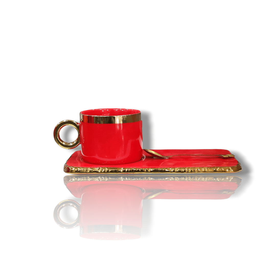 Be the first to review “Ceramic Cup with Platter & Spoon – Red & Gold”