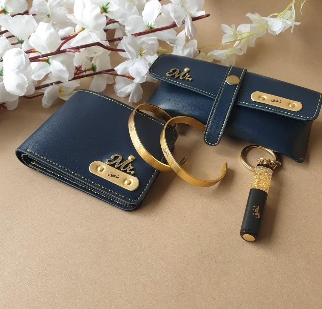 CUSTOMISED COUPLE COMBO – WALLET – EYEWEAR – PAID OF KADA’S – KEY CHAIN