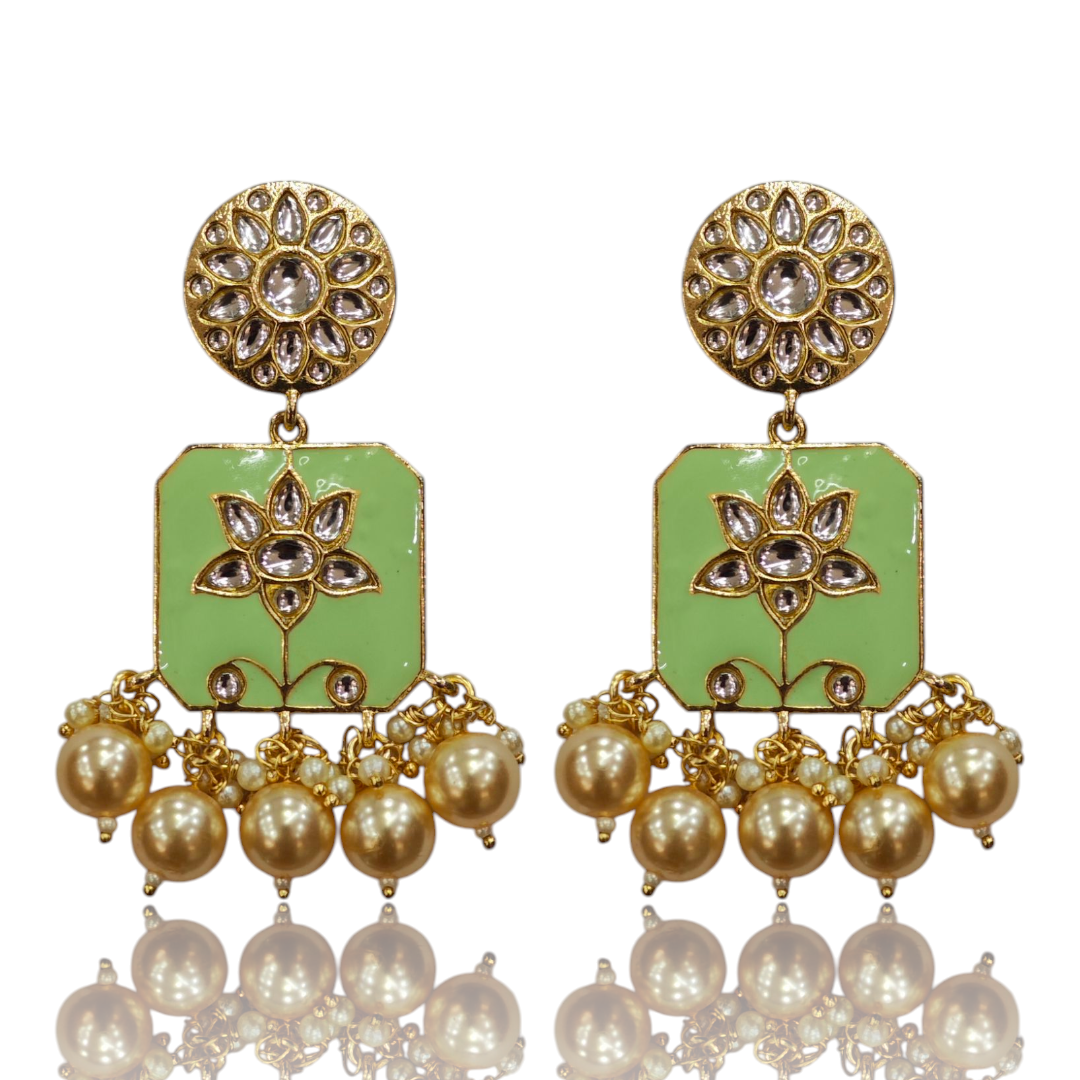 Intricate Enamel Earring – Mint (Pista) Green Enamel with Pearls – VD88852