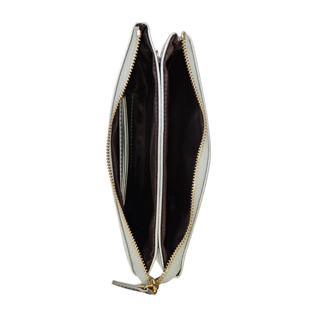 Min Min – Multi Pocket Organised Design – Wallet for Ladies – Cocktail / Shiny Material – Metallic Silver