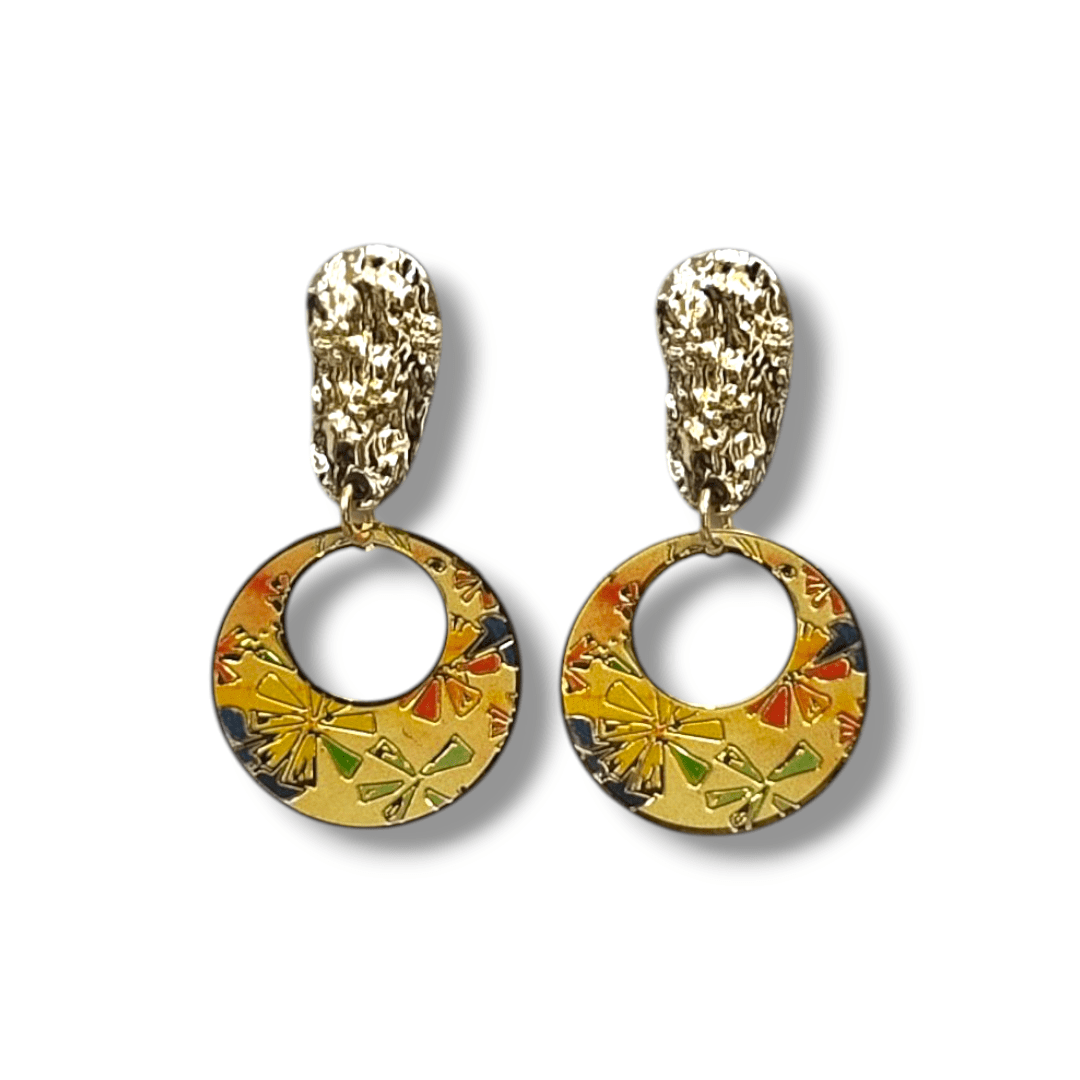 Multi Color Enamel – Gold Polish – Lasercut Fashion Earring – Light Weight – KJ CU