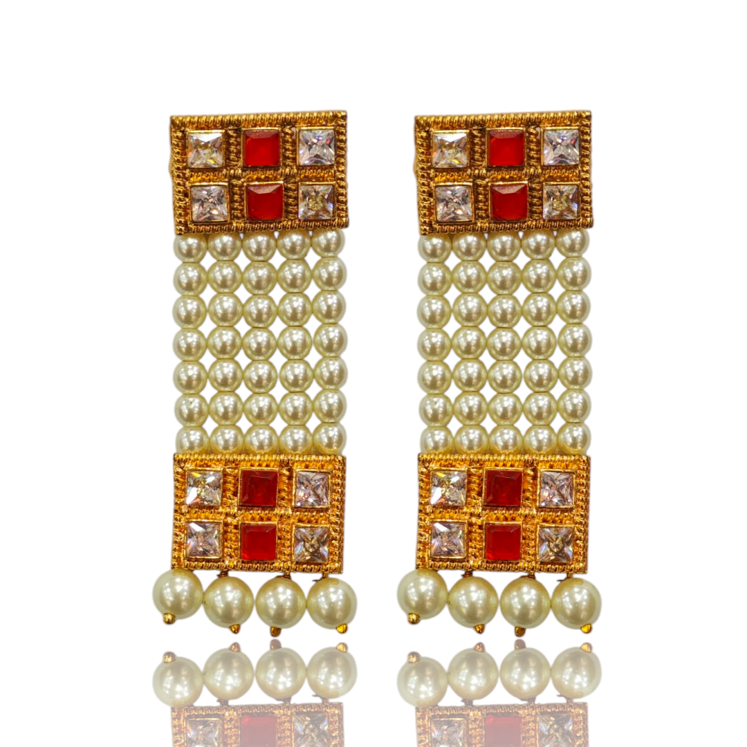 Orange Ethnic Earring – Pearl & Diamonds – Gold Polish – KJ16512Availability: 1 in stock