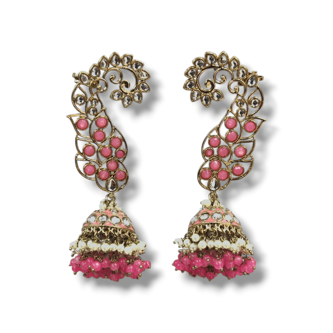 Peach Pink – Ethnic/Traditional Earring – Earcuff Design – Mehndi Gold Polish – KJ