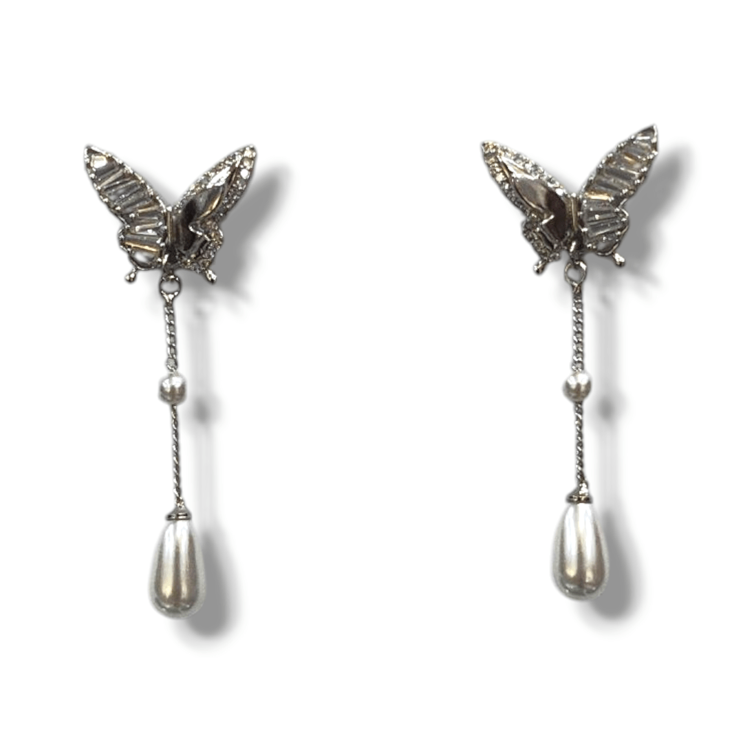 Silver Polish – Diamond Studded Butterfly with Chain & Pearl Earrings – Fashion Earring – Light Weight – KJ