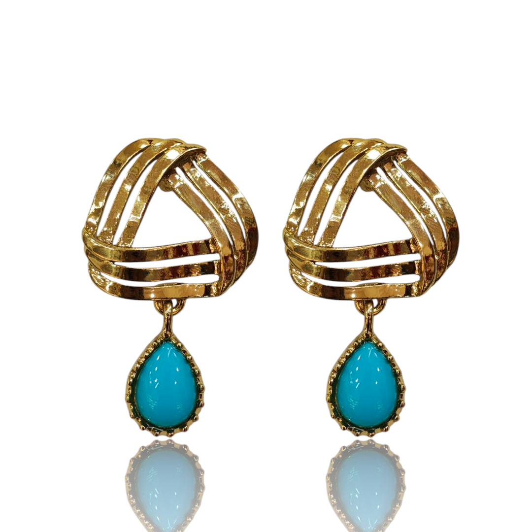 Turquoise (Firozi) Ethnic Earring – Mehndi Gold Polish – VD19407