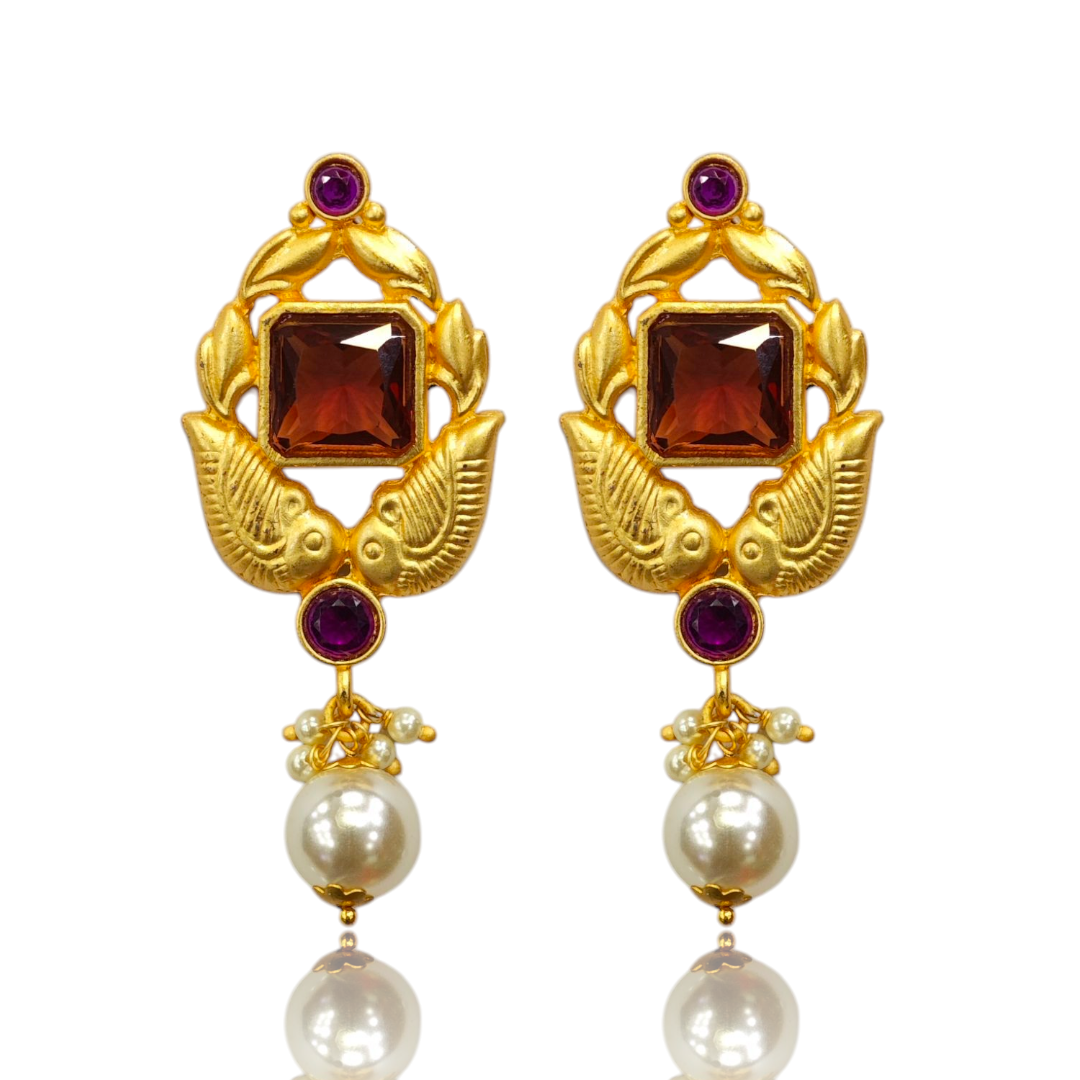 Wine (Purple) Ethnic Earring – Matte Gold Polish – VD42239Availability: 1 in stock