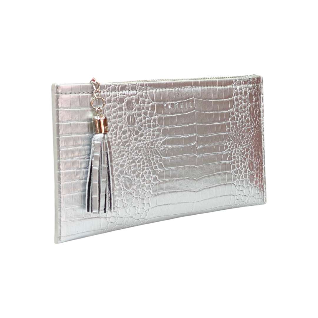 YAMEILI Single Zip Imported Wallet for Ladies – Metallic Silver